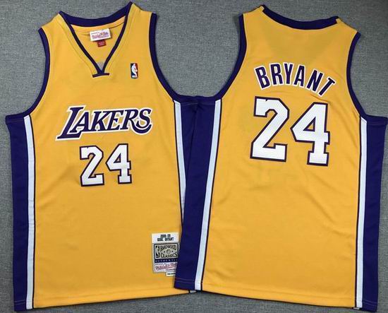 Youth Los Angeless Lakers #24 Kobe Bryant yellow throwback basketball Jerseys