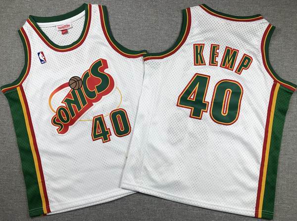 Youth Seattle SuperSonics #40 Shawn Kemp white throwback nba Jersey-XD